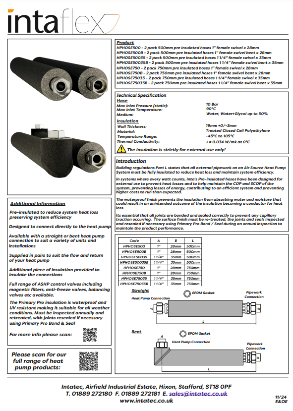 Pre Insulated Hoses 500mm - 1¼" F Swivel Elbow x 35mm (2 Pack)